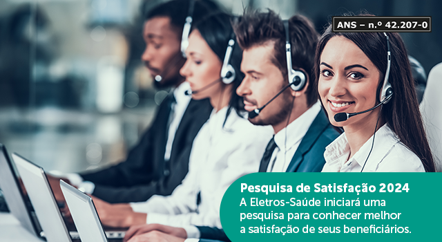 A Eletros-Saúde precisa conhecer melhor a experiência e nível de satisfação de seus beneficiários em relação aos seus planos de saúde durante o ano de 2023. Por isso, realizaremos uma pesquisa entre os meses de fevereiro e março, com beneficiários maiores de 18 anos que serão escolhidos aleatoriamente. O contato será feito pelo Instituto Ibero-Brasileiro de Relacionamento com o Cliente – IBRC, contratado pela Eletros-Saúde, cuja experiência é comprovada nesta atividade há anos, e considerado um dos principais Institutos do mercado.