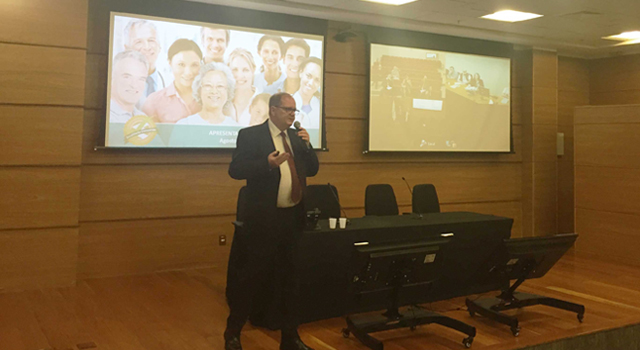 Juntamente com sua equipe, falou sobre o mercado de saúde suplementar, apresentando os produtos da operadora para empregados do ONS que são participantes da Fundação Eletrobras de Seguridade Social.