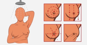 - Movimentos circulares: Use os dedos juntos e esticados para fazer movimentos circulares, palpando toda a área da mama de cima para baixo.
