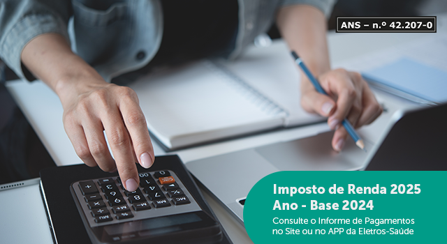 O Informe Anual de Pagamentos – Ano-Base 2024, já está disponível no site e no App da Eletros-Saúde. Para acessar, realize o seu login na área restrita do Beneficiário e clique na opção “Declarações” e, posteriormente, no “Ano 2024”.
