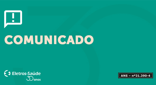 Devido ao feriado de Corpus Christi, nos dias 03 e 04 de junho não haverá expediente no Eletros-Saúde. O retorno das atividades ocorrerá na segunda-feira, dia 07.
